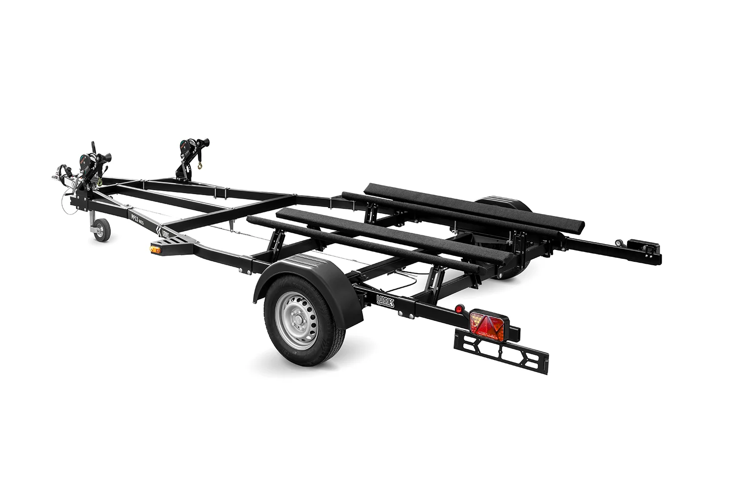 W standardzie wyposażyliśmy przyczepę, m.in. w uchylne lampy LED. Dzięki temu rozwiązaniu nie ma możliwości uszkodzenia skutera w trakcie napływania. Technologia LED wydłuża żywotność oświetlenia, a zastosowane w nich złącza bajonet pozwalają w razie potrzeby na łatwy demontaż lamp oraz gwarantują wodoodporność całego systemu. Oświetlenie stanowi integralną część pojazdu i jest intuicyjne w obsłudze. W prosty sposób można je odbezpieczyć i ustawić w odpowiednim ułożeniu umożliwiającym wprowadzenie lub sprowadzenie skutera wodnego.